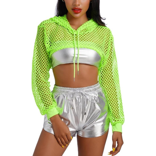 Casual Oversize Fishnet Crop Hoodie Tank Top for Women